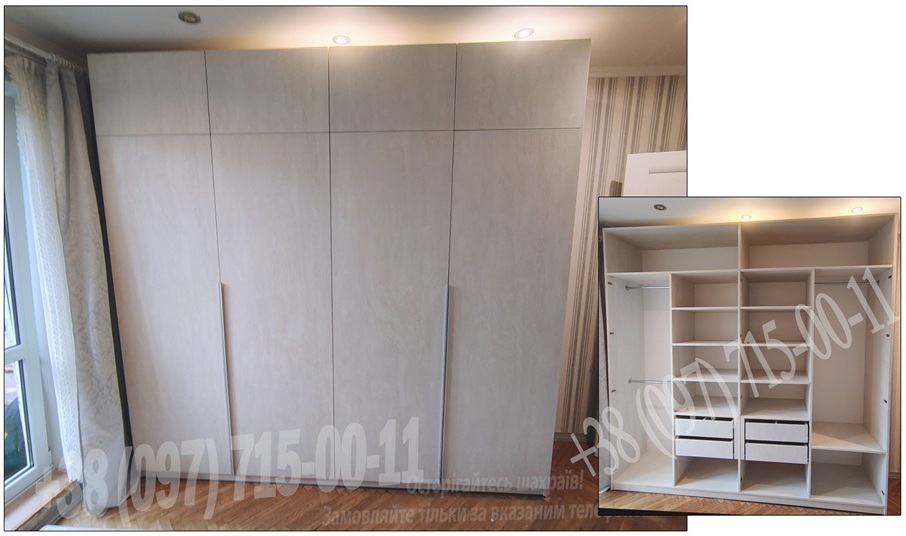 УВАГА! При виборі виробника шафи орієнтуйтеся не тільки від того, у кого дешевше, але й від якості роботи та якості використовуваних матеріалів. Тому що за низької ціни можна не завжди отримати те, що хотілося. Ми не хочемо використовувати погані матеріали. Це може, можливо, зробити наші ціни більшими за ціни конкурентів. Враховуйте те, що в наших цінах ми вже враховуємо хороші матеріали, якісну роботу, безкоштовного дизайнера, доставку, встановлення та можливість конструювання індивідуального внутрішнього наповнення навіть у стандартних шафах.